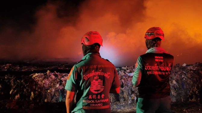 ตรัง/เกิดเหตุเพลิงไหม้บ่อขยะของเทศบาลนครตรัง กลางดึก ส่งผลให้กลุ่มควันฟุ้งกระจาย กระทบประชาชนหลายหมู่บ้าน เจ้าหน้าที่เร่งควบคุมเพลิงใช้เวลากว่า 1 ชั่วโมงจึงสงบ