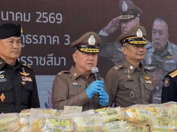 นครราชสีมา – ตำรวจภูธรภาค 3 แถลงผลปฏิบัติการ "ถอนรากถอนโคน" เครือข่ายยาเสพติดในรอบ 1 เดือน สกัดกั้นยาบ้ากว่า 4.7 ล้านเม็ด และไอซ์กว่า 400 กิโลกรัม จับกุมผู้ต้องหารวม 22 ราย พร้อมยึดทรัพย์สินมูลค่ารวมกว่า 22 ล้านบาท