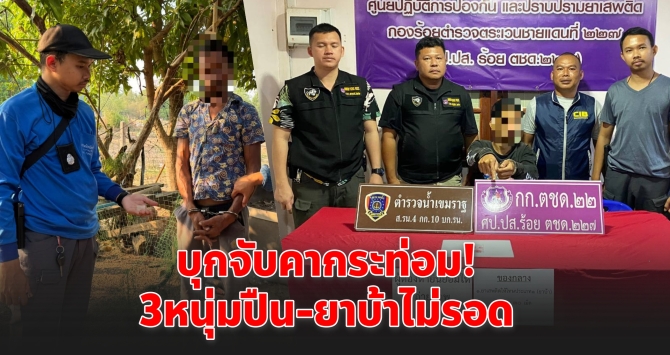 ตชด.227 บุกจับ 3 หนุ่มคากระท่อมนา ยึดปืน-ยาบ้า สารภาพสิ้น