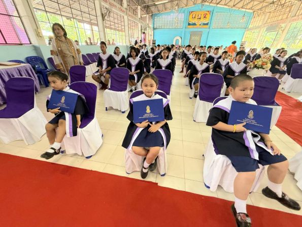 ดร.ศิริวัฒนา ต่อนี ผู้อำนวยการโรงเรียนบ้านม่วง เปิดเผยว่า ในปีการศึกษา 2568 มีผู้สำเร็จการศึกษารวม 80 คน แบ่งเป็นระดับอนุบาล 22 คน ระดับประถมศึกษาปีที่ 6 จำนวน 33 คน และระดับมัธยมศึกษาปีที่ 3