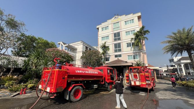 ระทึกกลางเมืองเลย! ไฟไหม้โรงแรมดัง ควันโขมง ท่ามกลางอากาศ 39 องศา