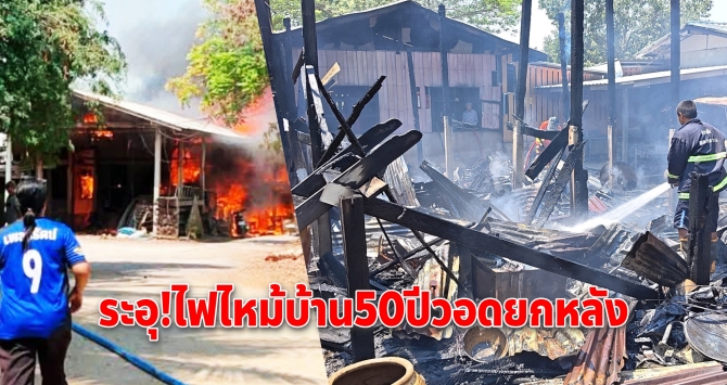 สุพรรณฯ ร้อนจัด! ไฟฟ้าลัดวงจรเผาบ้านไม้ 50 ปี วอดทั้งหลัง