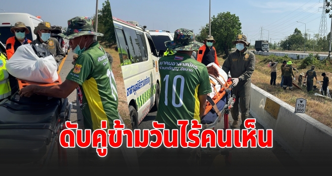 เมื่อเวลา 14.00 น. วันที่ 29 มีนาคม 2569 พ.ต.ต.พิจักษณ์ สูรยเสนีย์ พนักงานสอบสวน สภ.สรรพยา จังหวัดชัยนาท รับแจ้งเหตุพบผู้เสียชีวิต 2 ราย บริเวณเกาะกลางถนนสายเอเชีย ขาล่อง หลักกิโลเมตรที่ 130+800 พื้นที่หมู่ 7 ตำบลตลุก อำเภอสรรพยา จึงรุดไปตรวจสอบพร้อมเจ้าหน้าที่กู้ภัยและแพทย์เวรโรงพยาบาลสรรพยา