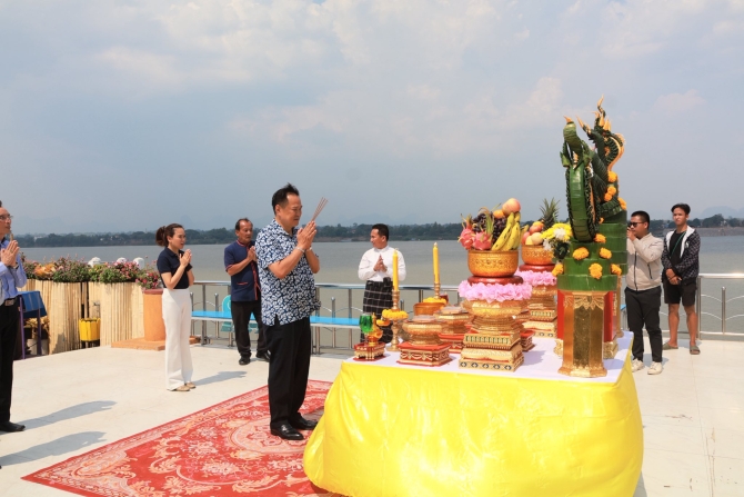 โอกาสนี้ นายกรัฐมนตรีได้สักการะพญาศรีสัตตนาคราชเพื่อความเป็นสิริมงคล ก่อนเยี่ยมชมกิจกรรมภายในงาน ซึ่งจัดขึ้นภายใต้แนวคิด “ปลุกอัตลักษณ์เมืองงาม สู่ Restination เมืองหลักแห่งการพักผ่อน”
