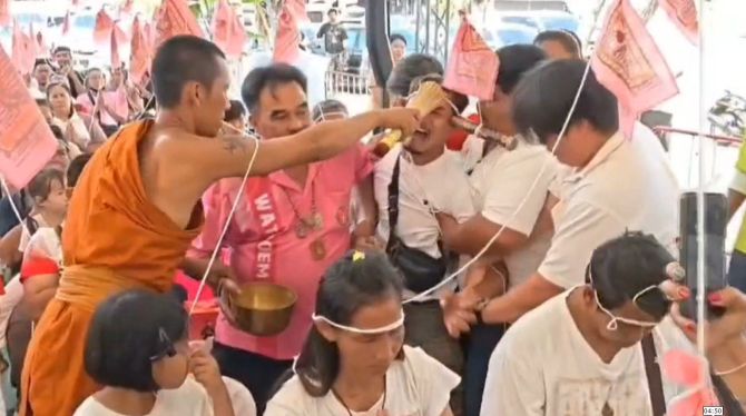 ส่องเลขเด็ด พิธีบวงสรวง ปลุกเสกท้าวเวสสุวรรณหน้าทองคำ สวดภาณยักษ์ ผู้ร่วมพิธีทั้งชายหญิงออกอาการของขึ้น ท่าทางเหมือนยักษ์ ส่งเสียงคำราม บางคนนั่งสั่น สาธุชนจากทั่วสารทิศรวมกว่า 5,000 คน เข้าร่วมพิธี