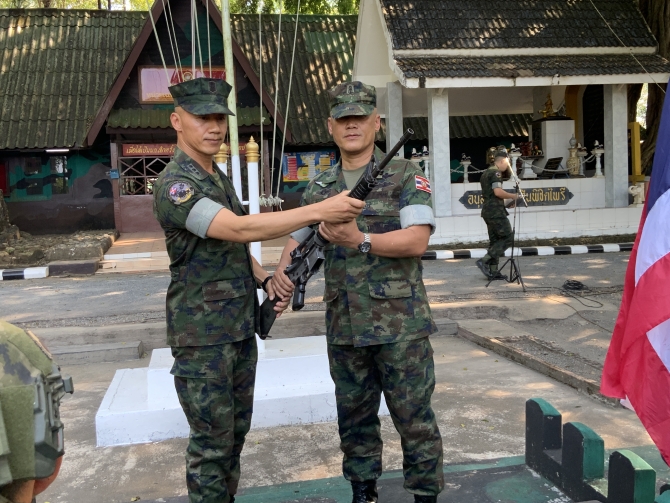 ชาวตราดนับร้อยร่ำไห้ส่งกำลังใจ "น.อ.ธรรมนูญ" ส่งมอบตำแหน่ง "น.อ.ปรัชญา" ผบ.ฉก.นย.ตราด คนใหม่