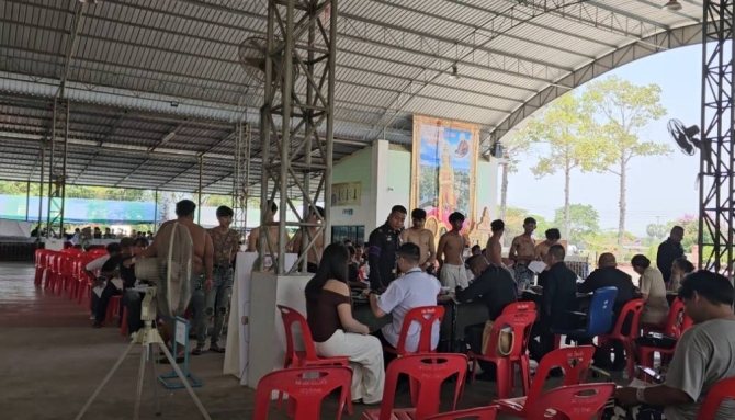บรรยากาศการตรวจเลือกทหารกองเกินเข้ากองประจำการประจำปีเต็มไปด้วยความคึกคักและรอยยิ้ม แม้สภาพอากาศจะร้อนอบอ้าว แต่บริเวณสถานที่เกณฑ์ทหารกลับเนืองแน่นไปด้วยบรรดาพ่อแม่ พี่น้อง และปู่ย่าตายาย ที่เดินทางมาปักหลักให้กำลังใจบุตรหลานกันอย่างใกล้ชิด สะท้อนให้เห็นถึงความผูกพันและทัศนคติเชิงบวกของชาวบ้านที่มีต่อการรับใช้ชาติ ในการลุ้นการจับใบดำ – ใบแดง ทั้งตัวของผู้มาเกณฑ์ทหารและบรรดาญาติมิตร ครอบครัว คนรัก แต่เต็มไปด้วยเรียบร้อย โดยสีสันพบ ปีนี้พบมีผู้สมัครเข้าเป็นทหารจำนวนมากไม่หวั่นแม้กระแสสงครามกับประเทศคู่กรณีในรอบสามที่อาจเกิดขึ้น