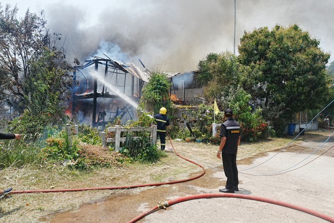 ระทึก! ไฟไหมบ้านสองชั้น วอดสองหลังติดกัน