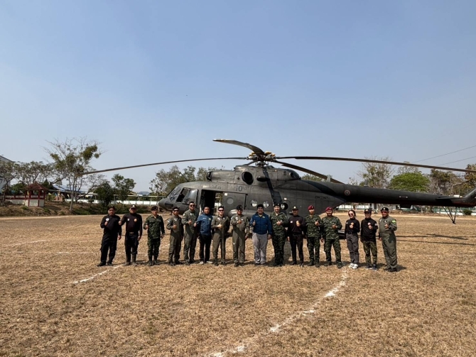 กองทัพบกจัด ฮ. MI -17 สนับสนุนแก้ไฟป่าในพื้นที่เข้าถึงยาก พร้อมระดมหน่วยทหารฉีดฝุ่นละอองในพื้นที่