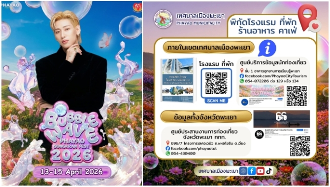 กระแสตอบรับพุ่งแรง! “แบมแบม” เตรียมขึ้นเวทีBUBBLE WAVE PHAYAO SONGKRAN FEST 2026 แฟนคลับแห่จองที่พักเต็มเมือง