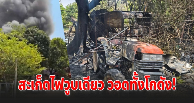 ระทึกกลางวัน! เจียรเหล็กสะเก็ดไฟลาม ไหม้เพิงของเก่าวอดทั้งหลัง