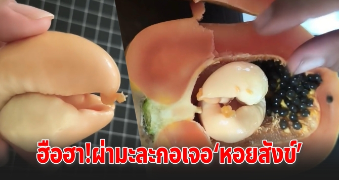 ฮือฮา! ผ่ามะละกอเจอ “หอยสังข์” กลางลูก เจ้าของเชื่อให้โชค