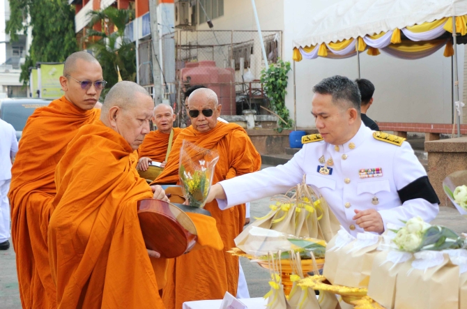 ผู้ว่าฯกาฬสินธุ์ นำข้าราชการ และประชาชนทำบุญตักบาตรถวายพระราชกุศล วันที่ระลึกมหาจักรีบรมราชวงศ์