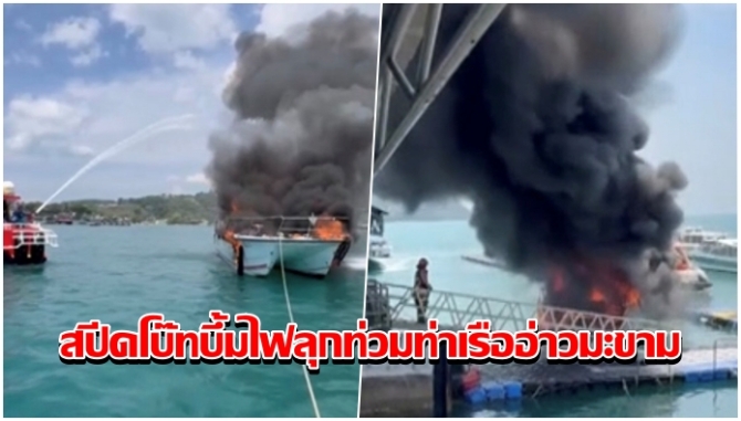 เรือสปีดโบ๊ทระเบิดขณะจอดเทียบท่าอ่าวมะขาม ไฟไหม้ทั้งลำเจ็บ 5 ราย