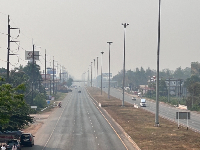 หนองคาย ค่าฝุ่นละอองพุ่งสูง PM 2.5 แตะเกือบร้อย ท้องฟ้าขมุกขมัว เตือนระวังสุขภาพ