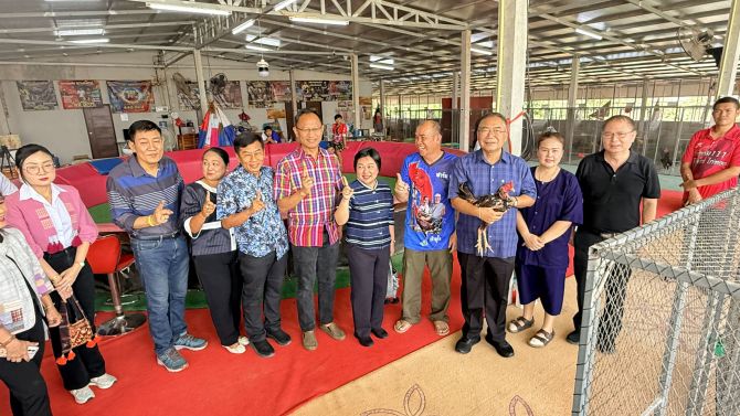 ไฮไลต์ของการลงพื้นที่ครั้งนี้ อยู่ที่การเยี่ยมชมกระบวนการเลี้ยงและดูแลไก่ชนแบบมืออาชีพ โดยผู้ว่าราชการจังหวัดได้ร่วมทดลอง “กาดน้ำไก่” หรือการทำความสะอาดและดูแลไก่ชนอย่างใกล้ชิด ท่ามกลางบรรยากาศเป็นกันเอง