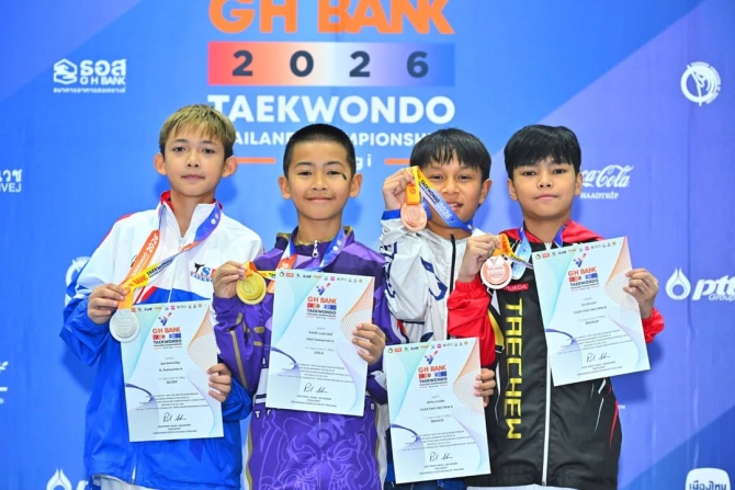 "หัวใจนักสู้เมืองเลย! ‘น้องอินเทล’ จอมเตะ ป.6 ซิวเหรียญทองชิงแชมป์ประเทศไทย ฝากชื่อชั้นนักกีฬาคุณภาพให้ชาววังสะพุงภาคภูมิใจ" 1 ต่อ 67” จอมเตะวังสะพุงผงาด! ‘น้องอินเทล’ ฝ่าด่านหินคว้าแชมป์ประเทศไทย เทควันโด G H Bank 2569