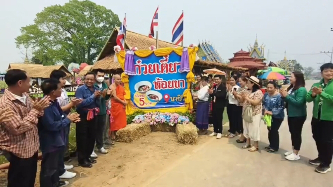 วันที่ 7 เม.ย. 2569 ผู้สื่อข่าวรายงานว่า บรรยากาศที่บ้านปัว ม.2 ต.ฝายกวาง อ.เชียงคำ จ.พะเยา หรือที่รู้จักกันในชื่อ บ้านปัวแหลง เต็มไปด้วยความคึกคัก หลังมีการเปิดตัวแหล่งท่องเที่ยวใหม่สุดเก๋ ก๋วยเตี๋ยวห้อยขา 5 บาท ท่ามกลางวิวทุ่งนาเขียวขจี