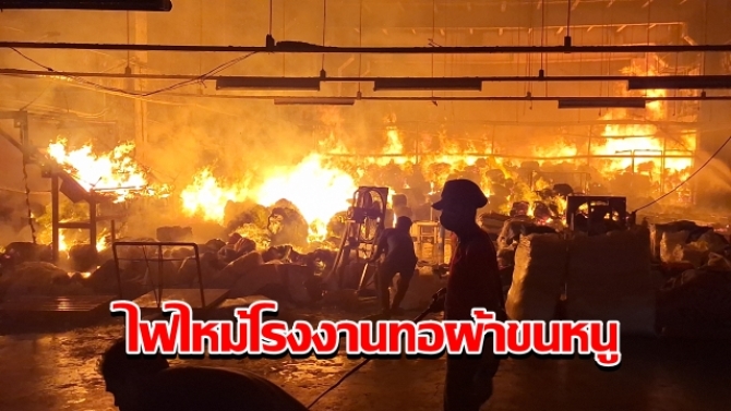 ไฟไหม้โรงงานทอผ้าขนหนู เผาโกดังสต๊อกผ้าวอดเกือบทั้งหลัง คาดเสียหายไม่ต่ำกว่า 10 ล้าน