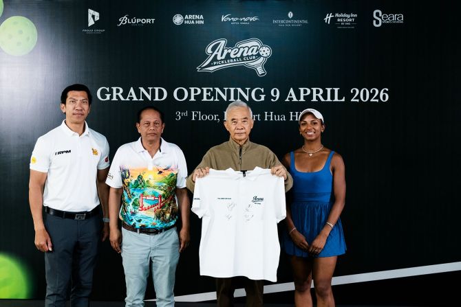 ทั้งนี้ Arena Pickleball Club เปิดให้บริการทุกวัน เวลา 08.00–20.00 น. โดยตั้งเป้าเป็นศูนย์กลางชุมชนของผู้รักกีฬา Pickleball และผลักดันหัวหินสู่การเป็น Sport Destination แห่งใหม่ของประเทศไทย