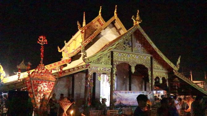 ประเพณีแห่ต้นดอกไม้ใหญ่ ถือเป็นเอกลักษณ์หนึ่งเดียวของประเทศไทย โดยชาวบ้านในตำบลแสงภา ทั้ง 6 หมู่บ้าน จะร่วมแรงร่วมใจกันประดิษฐ์ต้นดอกไม้ขนาดใหญ่ ประดับตกแต่งอย่างสวยงาม เพื่อนำมาแห่รอบอุโบสถในช่วงวันพระ เพื่อถวายเป็นพุทธบูชา สะท้อนถึงความศรัทธาและความสามัคคีของคนในชุมชน โดยในปีนี้มีต้นดอกไม้เข้าร่วมมากกว่า 20 ต้น