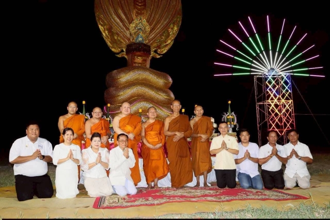 นายไพทูรย์ พรมสอน รองผู้ว่าราชการจังหวัดอำนาจเจริญ เป็นประธานฝ่ายฆราวาสพิธีสมโภชพระสิงห์มิ่งเมือง รูปเหมือนพระครูมงคลวรวัตน์(อดีตเจ้าอาวาสวัดเทพมงคลและอดีตที่ปรึกษาเจ้าคณะจังหวัดอำนาจเจริญ)และพญาเพชรภัทรนาคราช