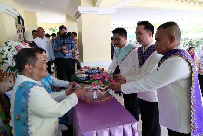 เมื่อวันที่ 10 เมษายน 2569 บรรยากาศที่จวนผู้ว่าราชการจังหวัดปทุมธานี อบอวลไปด้วยกลิ่นหอมของน้ำอบน้ำปรุงและรอยยิ้มแห่งความศรัทธา เมื่อ สำนักงานวัฒนธรรมจังหวัดปทุมธานี จับมือ สภาวัฒนธรรมจังหวัด และ เครือข่ายชาวมอญ ร่วมกันจัดงานสืบสานประเพณี “ส่งข้าวแช่พ่อเมือง” ประจำปี 2569 อย่างสมเกียรติและร่วมสมัยโดยขบวนแห่สำรับข้าวแช่สุดอลังการได้เคลื่อนเข้าสู่จวนผู้ว่าฯ นำโดย ขบวนแตรวงและนางรำผู้อ่อนช้อยจาก โรงเรียนบัวแก้วเกษร อำเภอลาดหลุมแก้ว ขบวนหางหงส์ธงตะขาบ ขันดอกไม้ และน้ำอบน้ำปรุงที่ปรุงอย่างประณีต พร้อมสำรับข้าวแช่รามัญที่จัดตกแต่งอย่างสวยงาม เพื่อนำมามอบให้แก่ผู้ใหญ่ที่เคารพนับถือ ในพิธีอันศักดิ์สิทธิ์นี้ นายเอกวิทย์ มีเพียร ผู้ว่าราชการจังหวัดปทุมธานี และ นางชฎานุช มีเพียร นายกเหล่ากาชาดจังหวัดปทุมธานี ให้เกียรติเป็นผู้รับมอบสำรับข้าวแช่