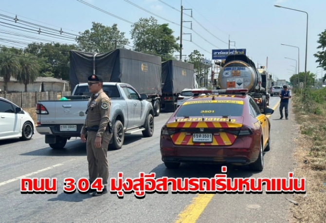 ถนน 304 มุ่งสู่อีสานรถเริ่มหนาแน่น ตำรวจทางหลวงปราจีนบุรีฯเตรียมพร้อมรับมือขบวนรถกลับบ้าน