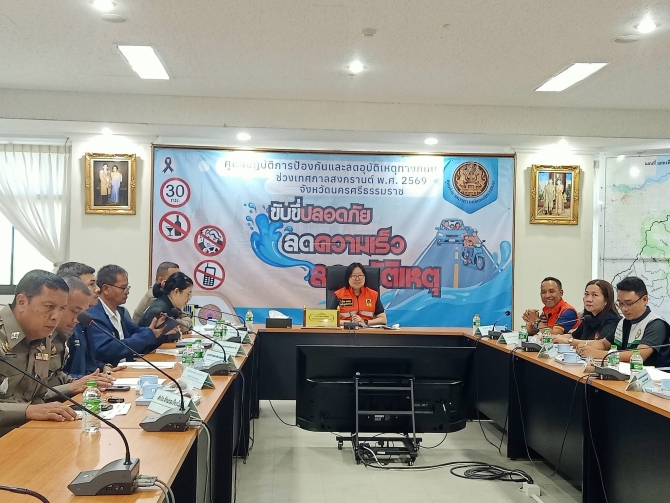 นางวจิราพร อำมาตยกุล รองผู้ว่าราชการจังหวัดนครศรีธรรมราช เป็นประธานการประชุมคณะทำงานติดตามสถานการรณ์ประจำวันการดำเนินงานป้องกันและดอุบัติเหตุทางถนนช่วงเทศกาลสงกรานต์ ประจำปี 2569 โดยมีหัวหน้าส่วนราชการที่เกี่ยวข้อรวมประชุมอย่างพร้อมเพรียง