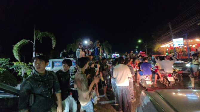 ทั้งนี้ เทศบาลได้เตรียมรองรับการเล่นน้ำในช่วงกลางคืนไว้ล่วงหน้า และคาดว่าจะมีประชาชน โดยเฉพาะกลุ่มวัยรุ่นออกมาร่วมกิจกรรมจำนวนมาก ซึ่งก็เป็นไปตามคาด โดยบรรยากาศคึกคักไม่แพ้พื้นที่ท่องเที่ยวขนาดใหญ่