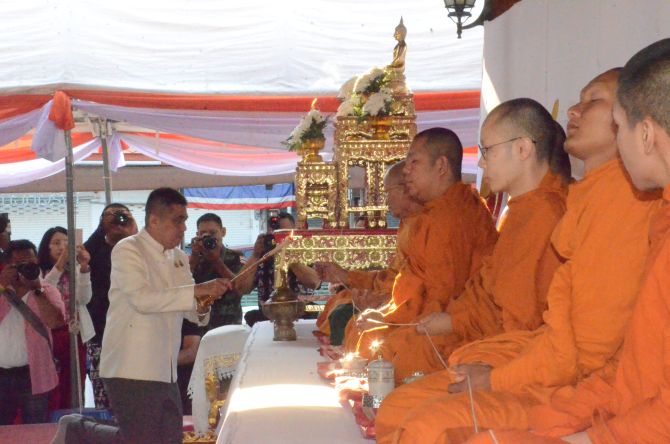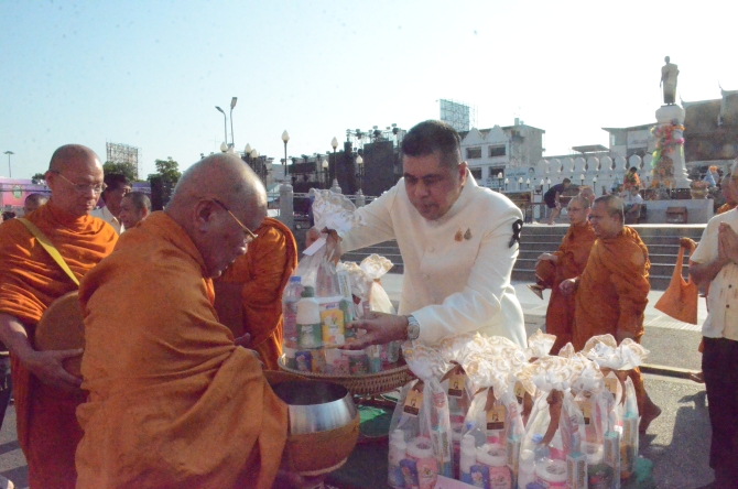 เมื่อเวลา 07.09 น. วันที่ 13 เมษายน 2569 ที่ลานอนุสาวรีย์ท้าวสุรนารี ถนนราชดำเนิน อำเภอเมืองนครราชสีมา นายอนุพงศ์ สุขสมนิตย์ ผู้ว่าราชการจังหวัดนครราชสีมา พร้อมด้วยผู้บริหารท้องถิ่นและประชาชนจำนวนมาก ร่วมประกอบพิธีทำบุญตักบาตรพระภิกษุสงฆ์ 29 รูป และรับน้ำพระพุทธมนต์ เนื่องในวันมหาสงกรานต์ โดยมีพระเทพสีมาภรณ์ เจ้าคณะจังหวัดนครราชสีมา เป็นประธานฝ่ายสงฆ์