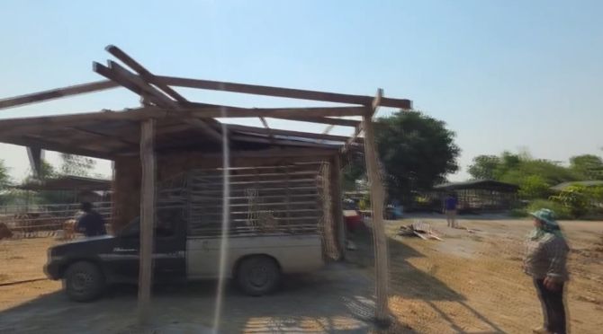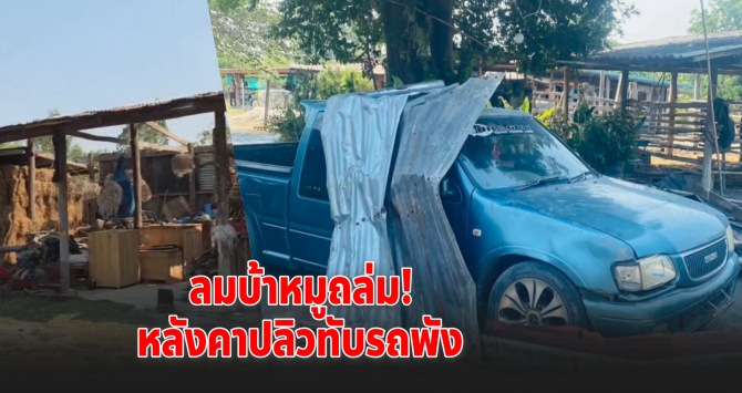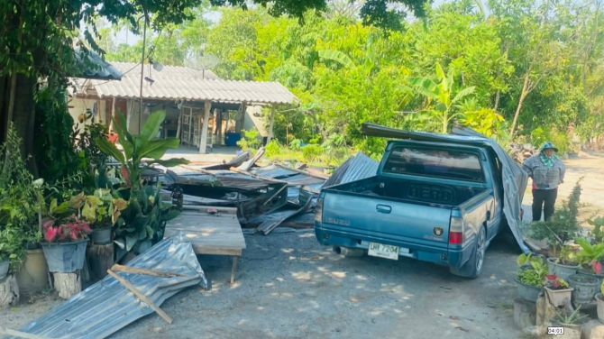 ลมบ้าหมูถล่มสุพรรณฯ หลังคาปลิวว่อนทับกระบะพังยับ