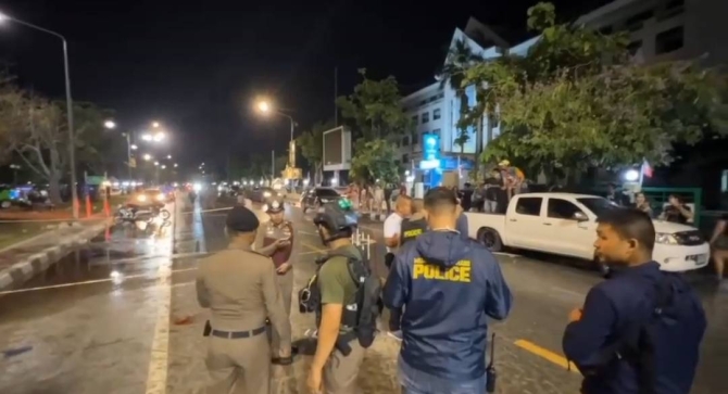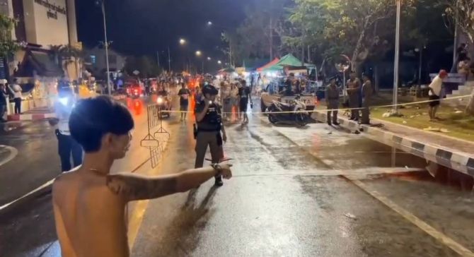 เจ้าหน้าที่เข้าตรวจสอบที่เกิดเหตุ พบคราบเลือดบนพื้นถนนและรองเท้าแตะตกอยู่หลายคู่ ขณะที่พยานในที่เกิดเหตุให้ข้อมูลว่า ทราบตัวผู้ก่อเหตุบางส่วนแล้ว