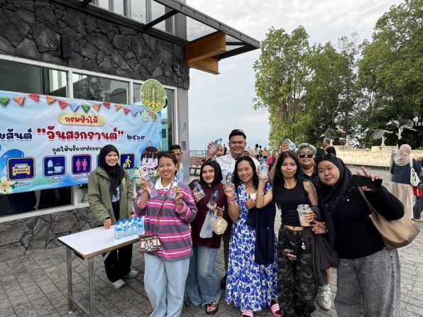 นายสรธร เพชรแก้วเพชร หัวหน้าป่านันทนาการทะเลหมอกอัยเยอร์เวง ลงพื้นที่พบปะนักท่องเที่ยว พร้อมแจกบัตรเข้าชมฟรีและน้ำดื่ม เพื่อคลายร้อนและอำนวยความสะดวกในช่วงวันหยุด