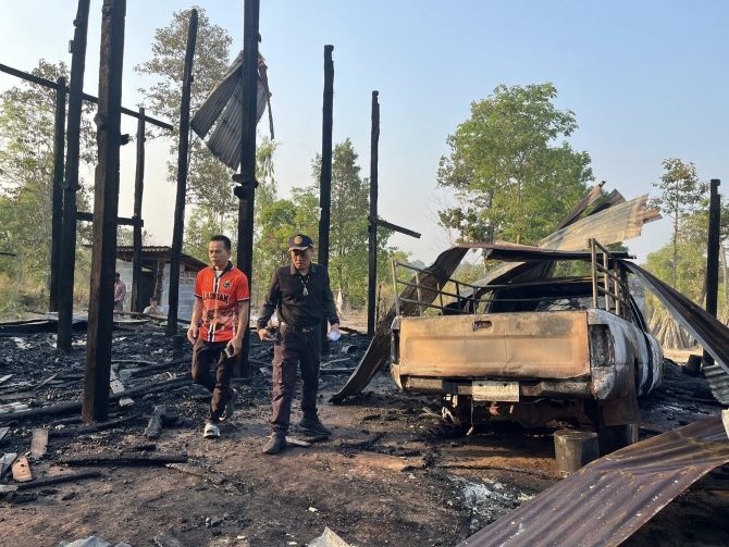 เกิดเหตุเพลิงไหม้บ้านพักอาศัย 2 ชั้นในพื้นที่อำเภอโพธิ์ไทร จังหวัดอุบลราชธานี กลางดึก ส่งผลให้บ้านและทรัพย์สินเสียหายทั้งหมด แต่เจ้าของบ้านสามารถหนีออกมาได้อย่างปลอดภัย