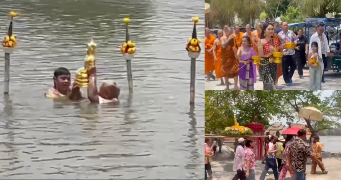 ศรัทธาท้าร้อน! พุทธศาสนิกชนแห่ร่วมพิธีอุ้มพระดำน้ำ วัดเขาลังพัฒนา
