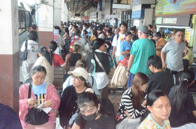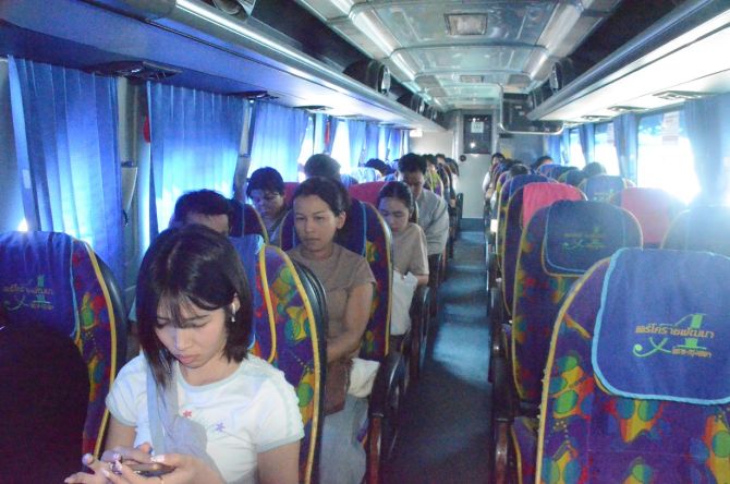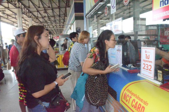 บริเวณช่องจำหน่ายตั๋วรถโดยสารปรับอากาศของบริษัทต่าง ๆ มีประชาชนต่อแถวยาวเพื่อซื้อตั๋ว โดยหลายเที่ยวรถเต็มเร็วกว่าปกติ ส่งผลให้ผู้โดยสารจำนวนไม่น้อยต้องรอรถนาน 2–3 ชั่วโมง อย่างไรก็ตาม ราคาค่าโดยสารยังคงเป็นไปตามปกติ ไม่มีการปรับขึ้น