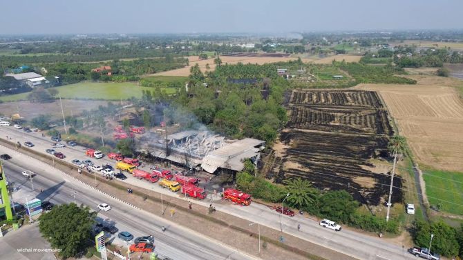 เผาฟางลามวอด! โกดังเฟอร์นิเจอร์ไม้ไฟไหม้ เสียหายกว่า 3 ล้าน