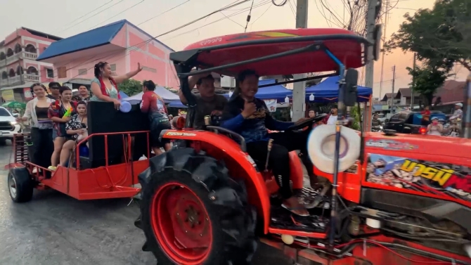 ไฮไลท์ของงานอยู่ที่ขบวนรถแทรกเตอร์และรถบรรทุกที่นำกลุ่มผู้ร่วมกิจกรรมแต่งกายสีสันสดใสมาร่วมเล่นน้ำ สร้างความคึกคักและดึงดูดสายตาผู้ร่วมงาน แม้ในช่วงที่ราคาน้ำมันปรับตัวสูงขึ้น แต่ยังคงมีการนำรถมาร่วมสร้างสีสันในวันปิดท้าย