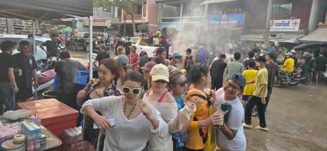 ผู้สื่อข่าวรายงานบรรยากาศการเฉลิมฉลองเทศกาลสงกรานต์ที่เมืองพยาตองซู ประเทศเมียนมา ซึ่งมีอาณาเขตติดต่อกับด่านเจดีย์สามองค์ อำเภอสังขละบุรี จังหวัดกาญจนบุรี พบว่าบรรยากาศเป็นไปอย่างคึกคัก มีกลุ่มวัยรุ่นและนักท่องเที่ยวทั้งชาวไทยและชาวเมียนมาจำนวนมาก ออกมาเล่นสาดน้ำและปะแป้งกันอย่างสนุกสนานเพื่อคลายความร้อน