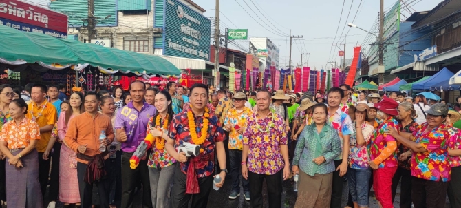 จากนั้น วันที่ 18 เมษายน 2569 ที่ถนนข้าวเม่า (ถนนเกษมสมบัติ) จะมีพิธีตักบาตร แห่พระสงฆ์ และนางสงกรานต์เพื่อสิริมงคล พบและชมขบวนแห่สุดอลังการ ร่วมสาดน้ำให้ชุ่มฉ่ำ สนุกสุดเหวี่ยงกับอุโมงค์น้ำ และปาร์ตี้โฟม ชมการแสดงแสง สี เสียง และการแสดงของศิลปิน เชอร์รี่ อินคอนเสิร์ต (เต็มวง) และ น้ำแข็ง ทิพวรรณ (เต็มวง)