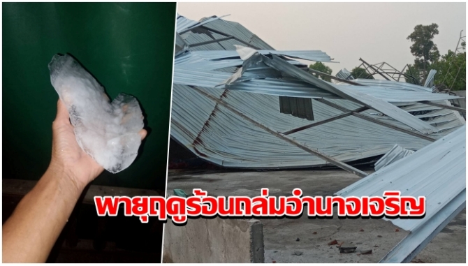 พายุฤดูร้อนถล่มอำนาจเจริญ โกดังพังราบ บ้านเสียหาย ลูกเห็บตก