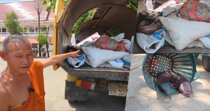 นางสุนทร เทพทอง อายุ 59 ปี อสม.และเป็นแม่ครัววัดกลาง เล่าว่าหลังจากหมดเทศกาลสงกรานต์ มีคนขี่มอเตอร์ไซค์เข้ามาในวัดพร้อมถุงขนาดใหญ่หลายถุง ถามว่าจะให้อาหารปลาได้ไหม ตนบอกว่าได้