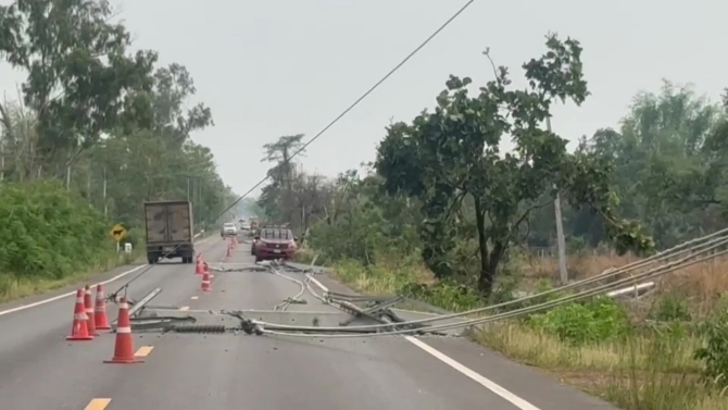 จนท.ไฟฟ้าระดมสรรพกำลังเครื่องมือพร้อมอุปกรณ์ซ่อมหลังพายุพัดโค่นเสาไฟฟ้า 15 ต้น