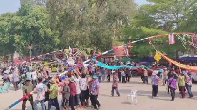 อุทัยฯระอุ! ชาวบ้านยกตำบลแห่เสาธงไม้ไผ่ ฝ่าร้อนจัด-ฉีดน้ำคลายเดือด