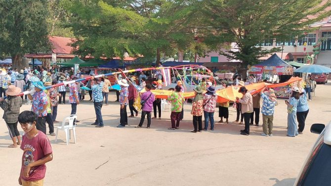 นอกจากนี้ยังมีการละเล่นพื้นบ้านสร้างความสนุกสนาน ท่ามกลางบรรยากาศอบอุ่นของคนในชุมชน แม้อากาศจะร้อนจัด แต่ประชาชนยังคงร่วมกิจกรรมอย่างต่อเนื่อง