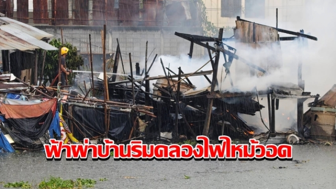 พายุฝนกระหน่ำปทุมธานี ฟ้าผ่าบ้านริมคลองไฟไหม้วอดทั้งหลัง