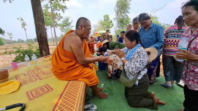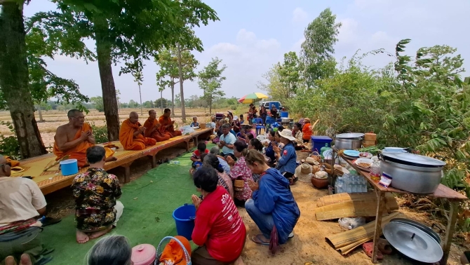 เมื่อวันที่ 19 เมษายน 2569 ผู้สื่อข่าวลงพื้นที่บริเวณลำห้วยแดง หมู่ที่ 6 บ้านทุ่งสว่าง ตำบลกุดเสลา อำเภอกันทรลักษ์ จังหวัดศรีสะเกษ พบว่าชาวบ้านได้ร่วมกันจัดกิจกรรมตามประเพณีวันเนา โดยนิมนต์พระภิกษุสงฆ์มาฉันเพลบริเวณลำห้วย