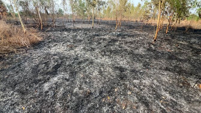 ภายหลังเพลิงสงบ พบความเสียหายเป็นวงกว้าง ต้นยูคาลิปตัสถูกไฟเผาเหลือเพียงเถ้าถ่าน เจ้าหน้าที่ยังคงเฝ้าระวังและดูแลพื้นที่ใกล้เคียงอย่างต่อเนื่อง เพื่อป้องกันการปะทุซ้ำ ขณะเดียวกันอยู่ระหว่างเร่งติดตามตัวผู้ก่อเหตุมาดำเนินคดี