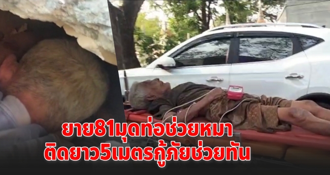 ระทึกอยุธยา! ยาย 81 มุดช่วยหมาติดท่อ 5 เมตร กู้ภัยเร่งตัดปูนช่วยชีวิต